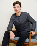 Μπλούζα: Μακρυμάνικη με κουμπιά και μοτίβο ψαροκόκαλο~μαύρο. Παντελόνι: Ψηλόμεσο μοντέρνο μαύρο με λάστιχο στη μέση. Πολύ μαλακό ύφασμα για μοναδικές στιγμές χαλάρωσης στο σπίτι σας. Ελληνικό προϊόν. Σύνθεση: 100% Βαμβάκι. Συνδυάστε με...
