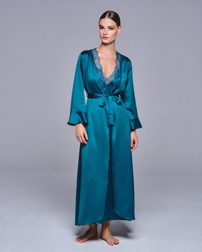 Σετ Νυχτικό-Ρόμπα Σμαραγδί Μάξι Lida