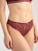 Εσώρουχο σε brazil γραμμή, με δαντέλα σε μπορντώ χρώμα. Εξαιρετικής ποιότητας απαλό προϊόν που δε διαγράφει από τα ρούχα σας. Σύνθεση: 89% Pol 11% Elast. Γαλλικό προϊόν. Συνδυάστε το με...