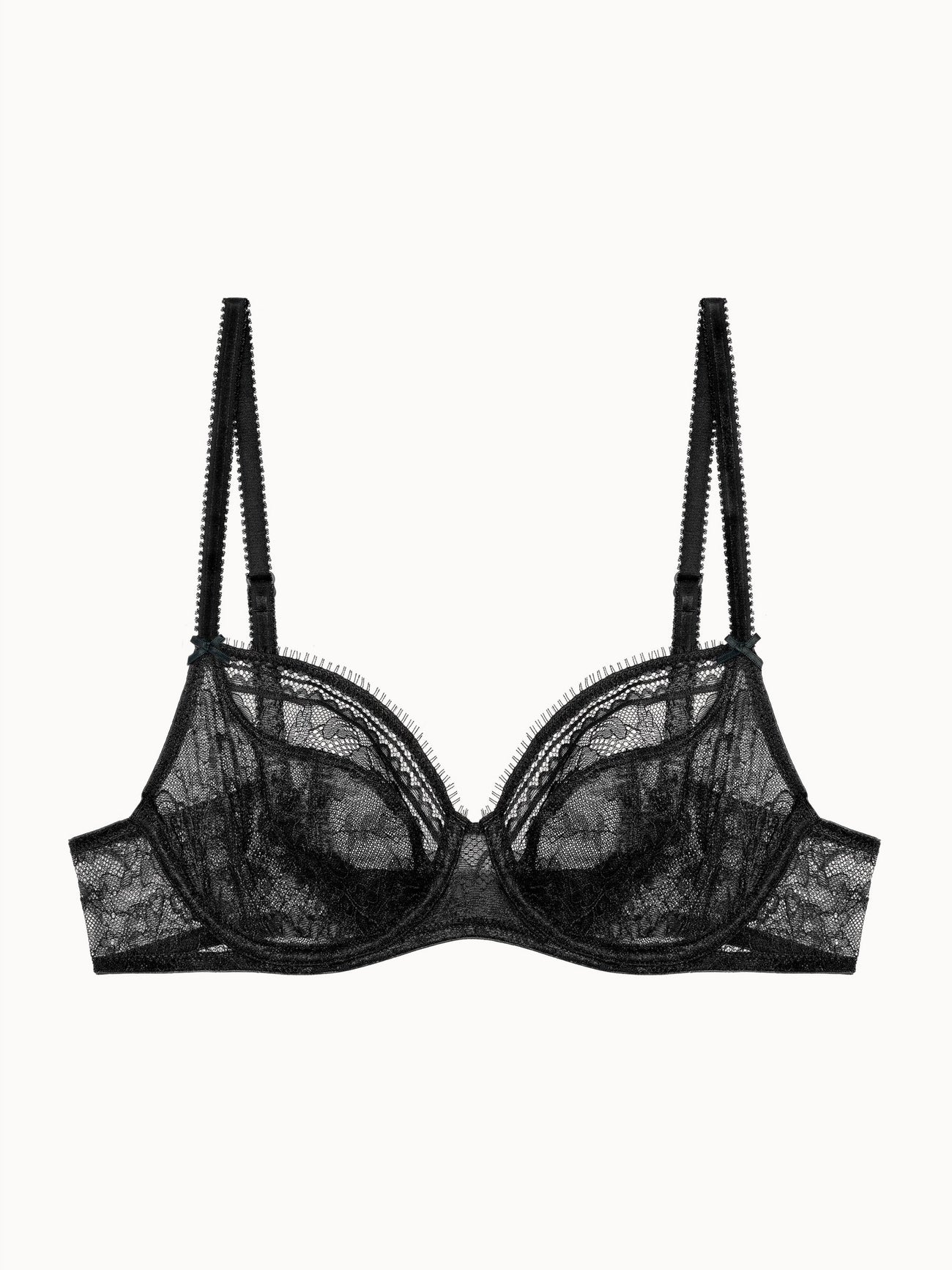 Σουτιέν 3/4 χωρίς ενίσχυση, με μπανέλα σε μαύρο χρώμα. Από πολλή απαλή δαντέλα που δε διαγράφει από τα ρούχα σας. Λείο και αόρατο μέσα από τα ρούχα σας για χρήση...