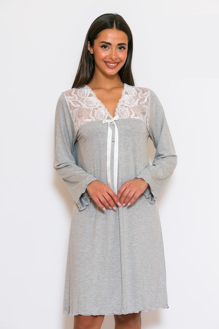 Νυχτικό βαμβακερό γκρι με δαντέλα Scherzo