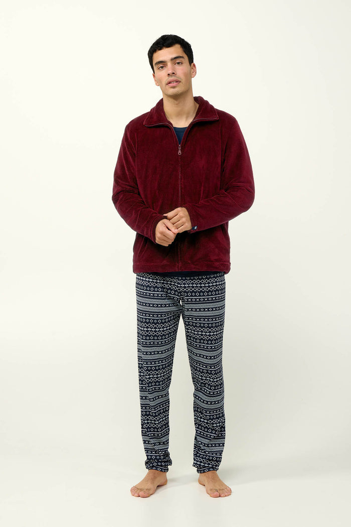 - Μακρυμάνικη ανδρική ρόμπα φλις μεσάτη. Μοναδικό στυλ με φερμουάρ, σε μπορντώ χρώμα.