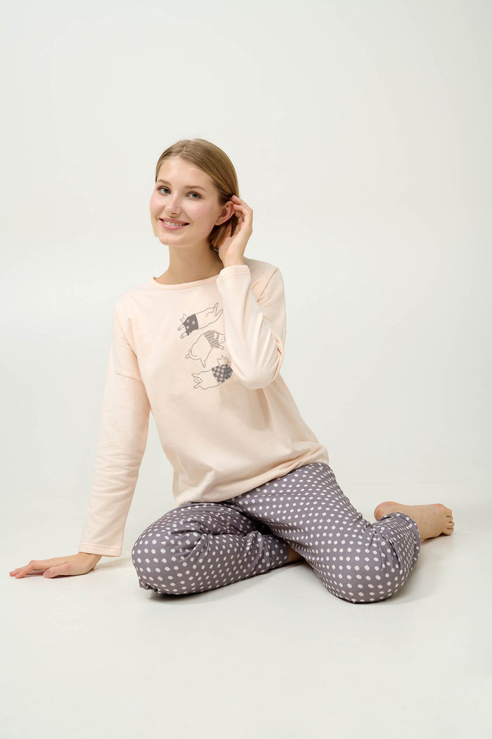 - Μπλούζα: Μακρυμάνικη παλ ροζ με σχέδιο γατιά.