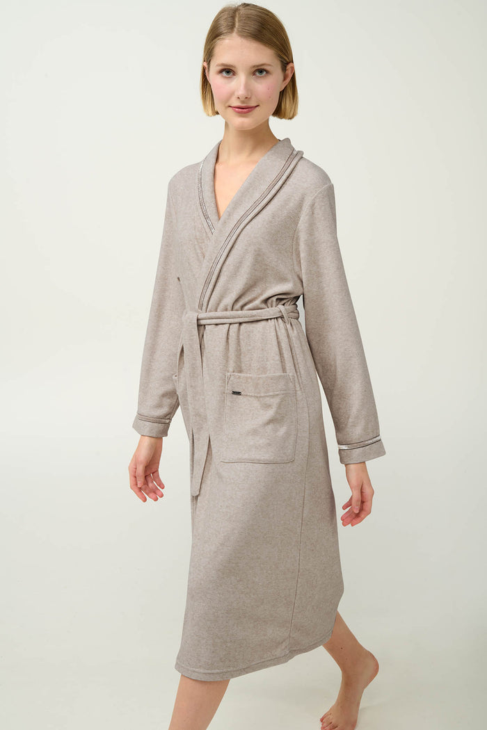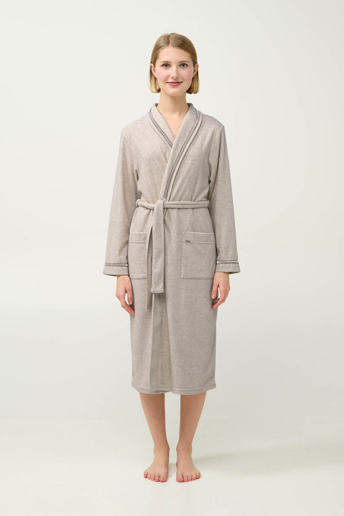 Γυναικεία Ρόμπα Μίντι Μπεζ δετή Vamp