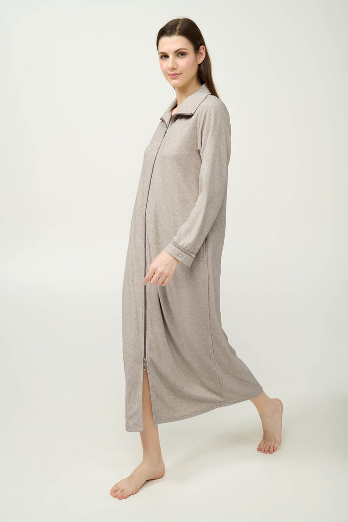Γυναικεία Ρόμπα Μίντι Μπεζ με φερμουάρ Vamp