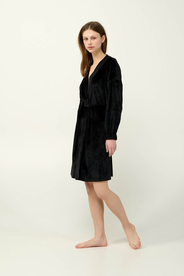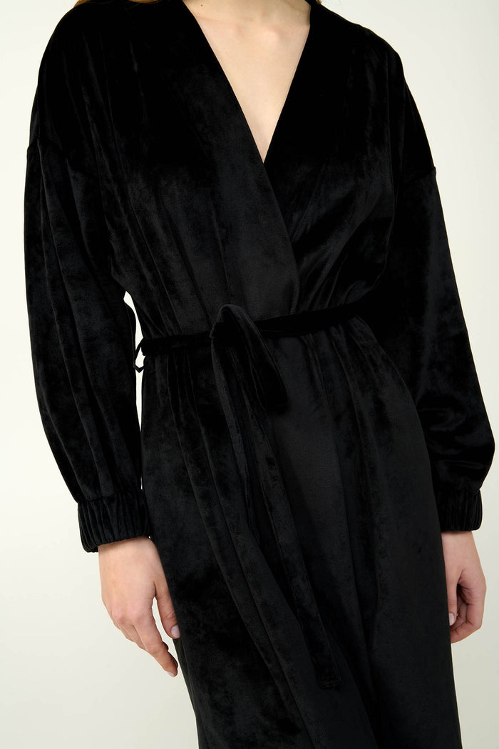 Γυναικεία Ρόμπα Μαύρη δετή βελουτέ Vamp