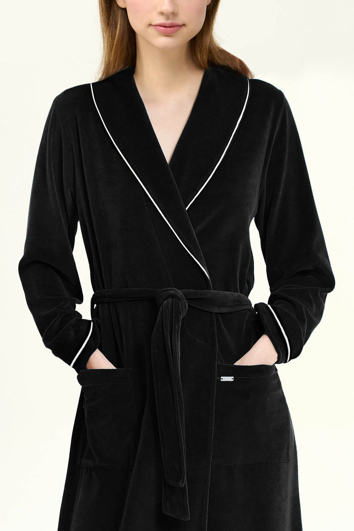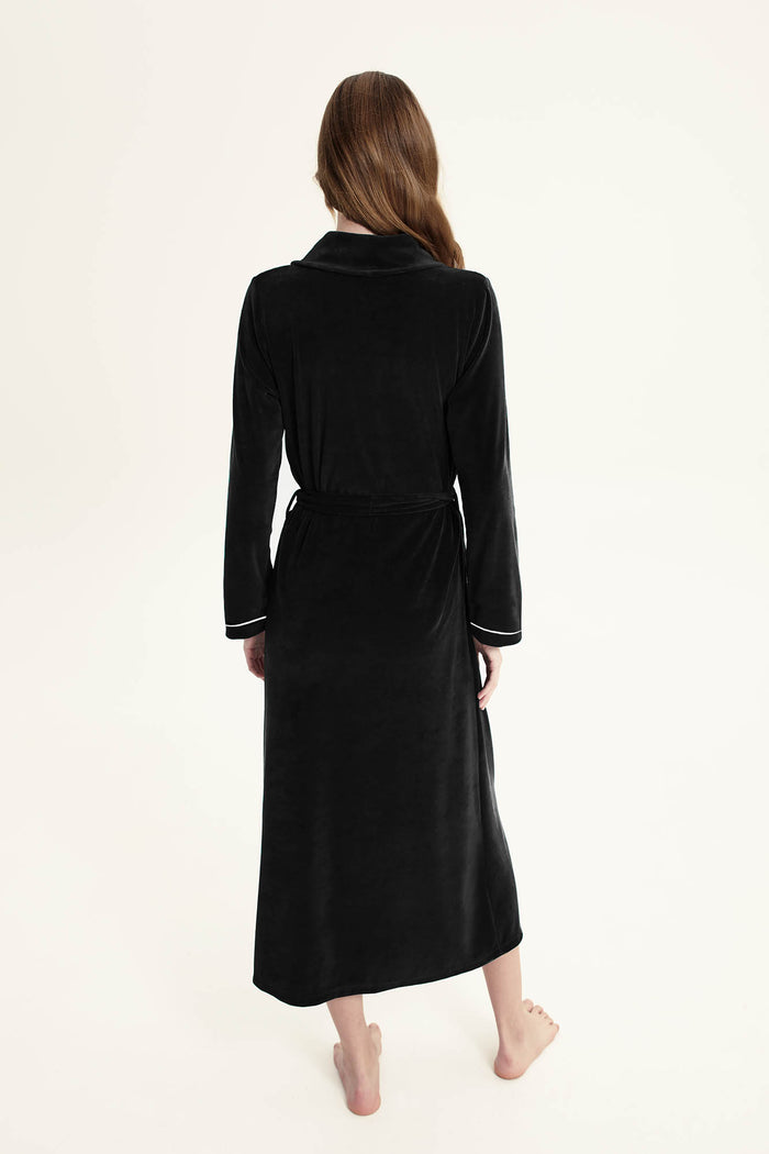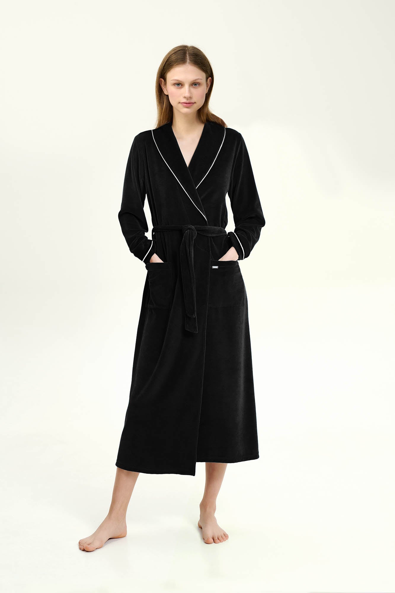 Μάξι Γυναικεία Ρόμπα Μαύρη δετή βελουτέ Vamp