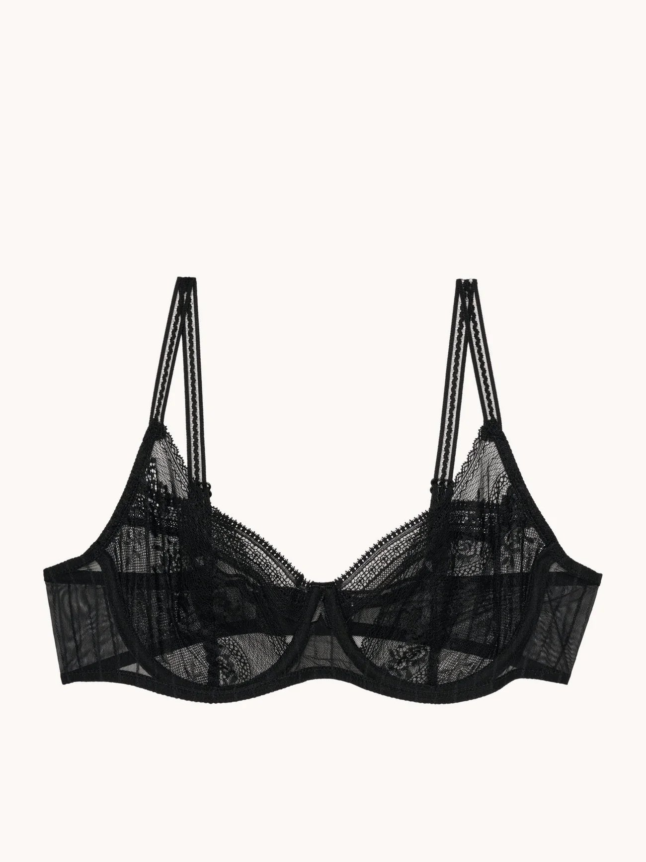 - Σουτιέν 3/4 χωρίς ενίσχυση, με μπανέλα σε μαύρο χρώμα. Από πολλή απαλή δαντέλα που δε διαγράφει από τα ρούχα σας.