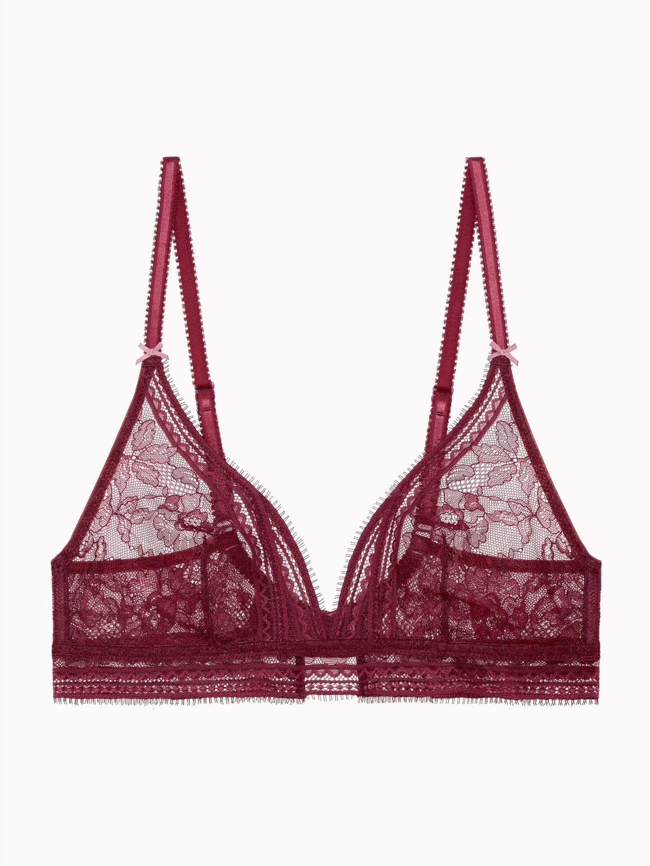 - Σουτιέν μπραλέτ σε μπορντώ χρώμα. Από πολλή απαλή δαντέλα που δε διαγράφει από τα ρούχα σας. Με μπανέλα σιλικόνης στο πλάϊ για τέλεια στήριξη.