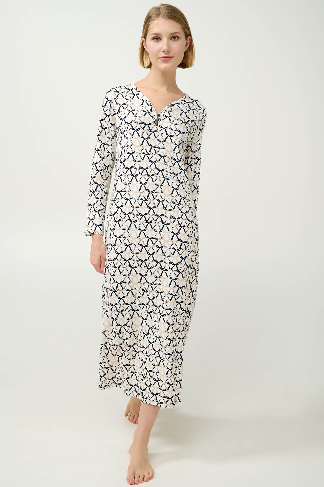 - Μακρύ καφτάνι βισκόζης σε μοναδικό εκρού χρώμα με σχέδιο.
