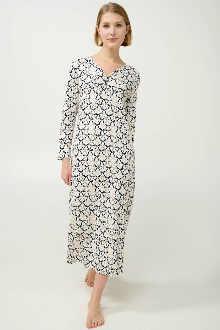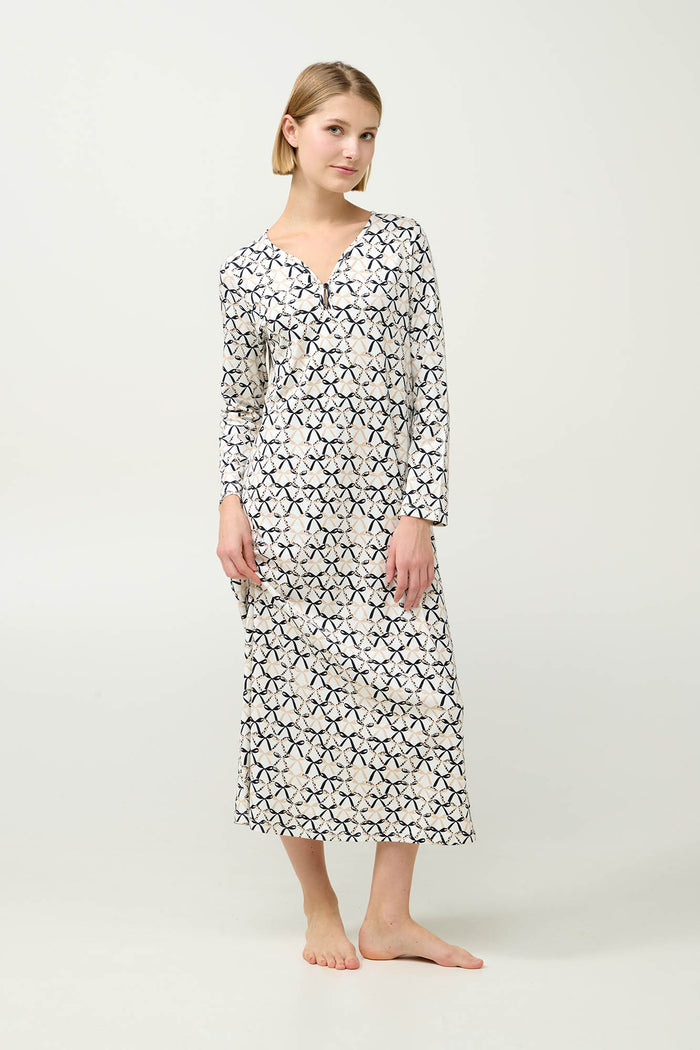 • Μακρύ καφτάνι βισκόζης σε μοναδικό εκρού χρώμα με σχέδιο.