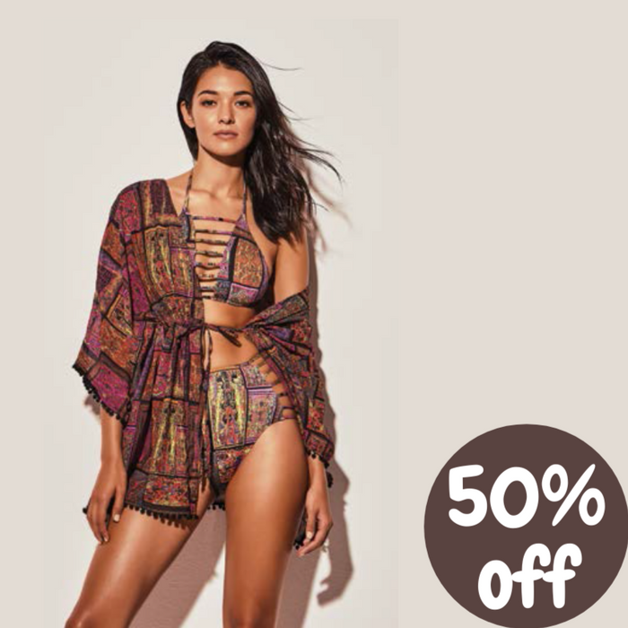 • Printed bra bra that ties at the neck and back with adjustable fastening