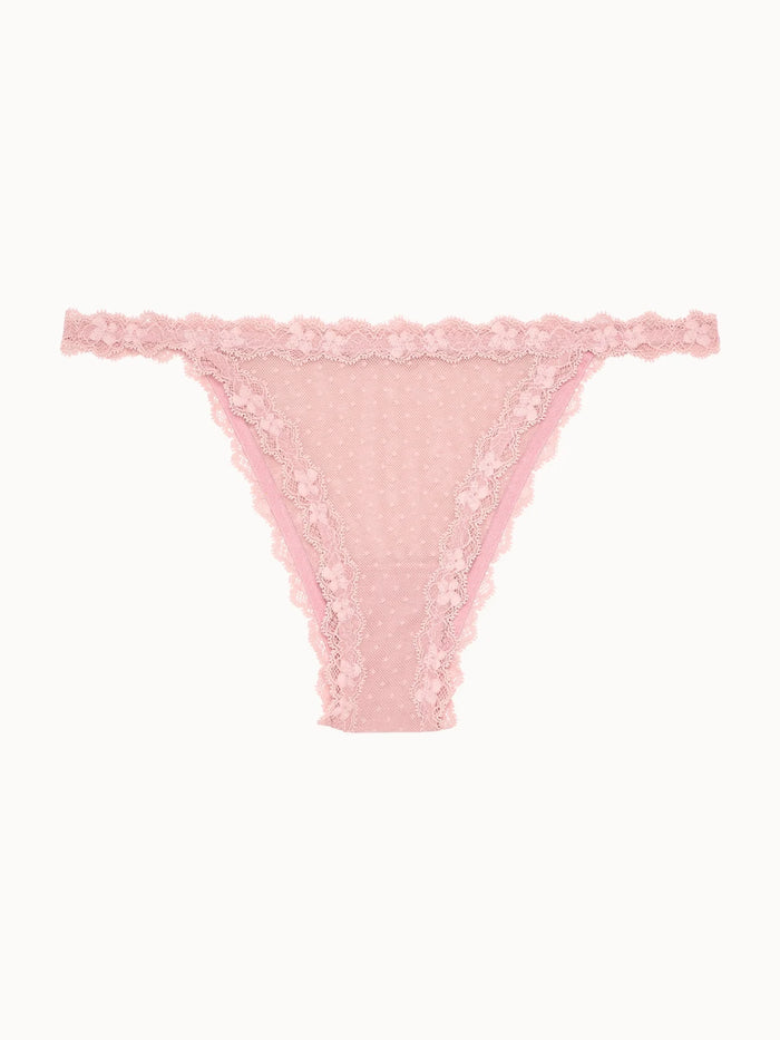 • Εσώρουχο σε brazil γραμμή, με δαντέλα σε ροζ χρώμα.