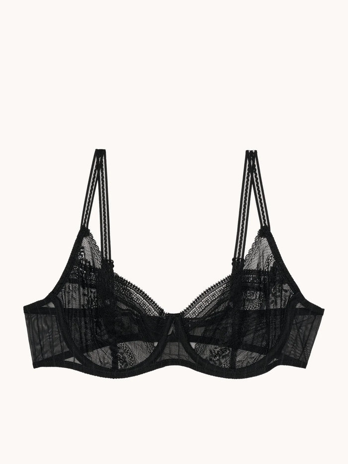 • Σουτιέν 3/4 χωρίς ενίσχυση, με μπανέλα σε μαύρο χρώμα. Από πολλή απαλή δαντέλα που δε διαγράφει από τα ρούχα σας.