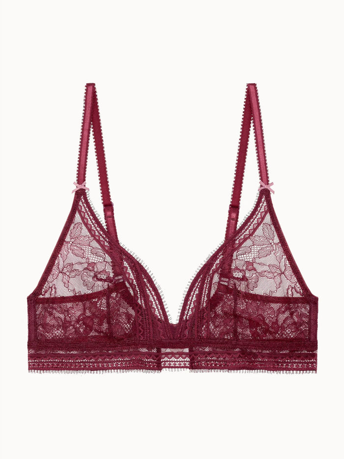 • Σουτιέν μπραλέτ σε μπορντώ χρώμα. Από πολλή απαλή δαντέλα που δε διαγράφει από τα ρούχα σας. Με μπανέλα σιλικόνης στο πλάϊ για τέλεια στήριξη.